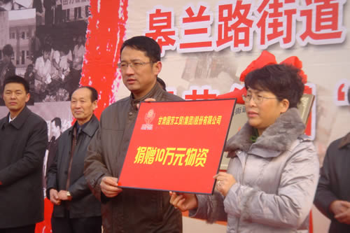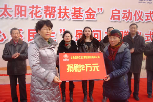 2012元月6日下午3時(shí),甘肅國(guó)芳集團(tuán)聯(lián)合城關(guān)區(qū)皋蘭路街道黨工委、辦事處舉行了“創(chuàng)先爭(zhēng)優(yōu)、扶貧濟(jì)困”太陽(yáng)花幫扶基金啟動(dòng)儀式,充分體現(xiàn)民生為本的服務(wù)宗旨,著力搭建社會(huì)幫扶救助平臺(tái),切實(shí)解決弱勢(shì)群體實(shí)際困難,促進(jìn)和諧街道建設(shè)。