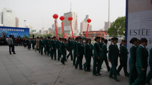 員工疏散完畢后,以整齊的隊列在東方紅廣場集合列隊,展示了良好的精神風(fēng)貌