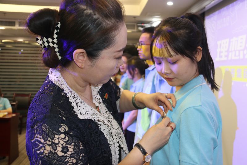 在入職儀式進(jìn)入尾聲之際,進(jìn)行授牌及贈(zèng)書儀式,由國芳集團(tuán)各位領(lǐng)導(dǎo)為新一屆管理培訓(xùn)生佩戴工卡并合影留念,從此刻起,數(shù)十名管理培訓(xùn)生便正式成為了國芳集團(tuán)中的一員。